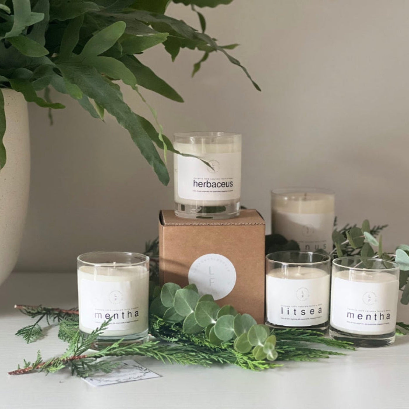 Candela in cera di soia e oli essenziali, 100% naturale ed ecologica.