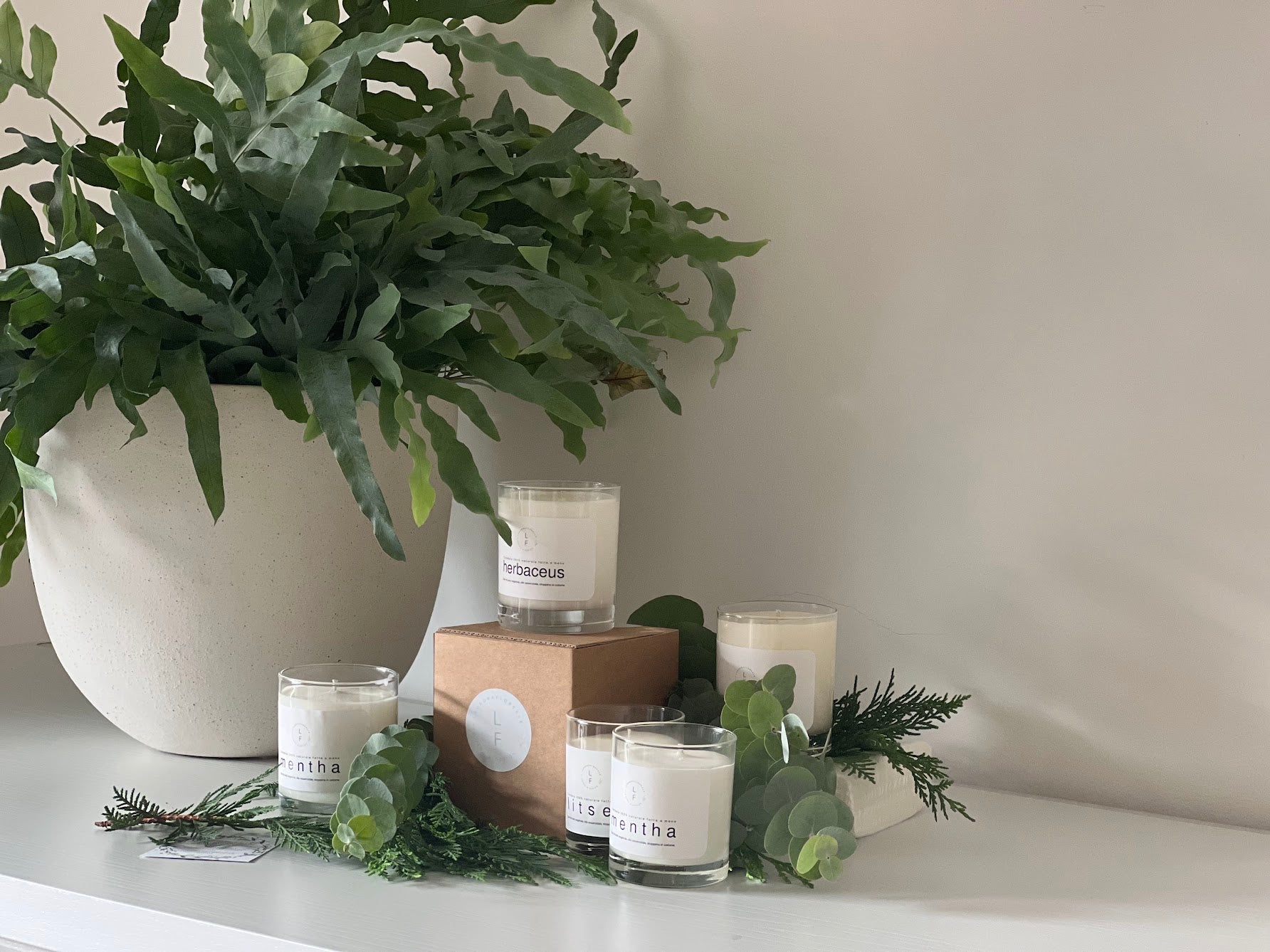 Candela in cera di soia e oli essenziali, 100% naturale ed ecologica.