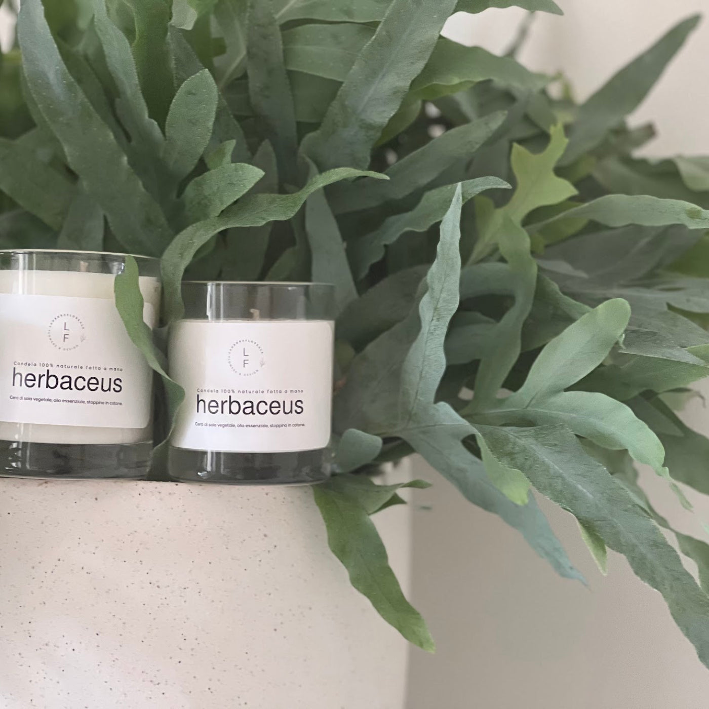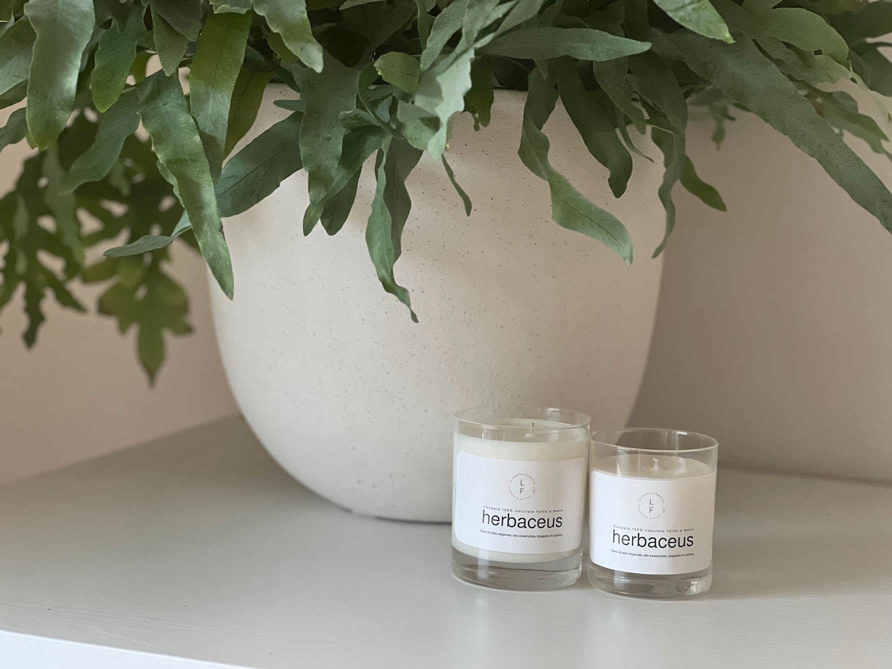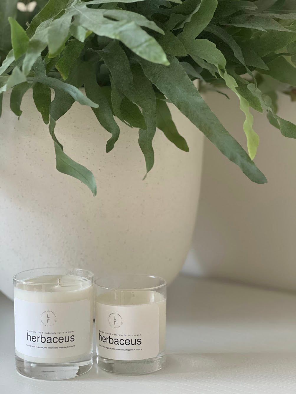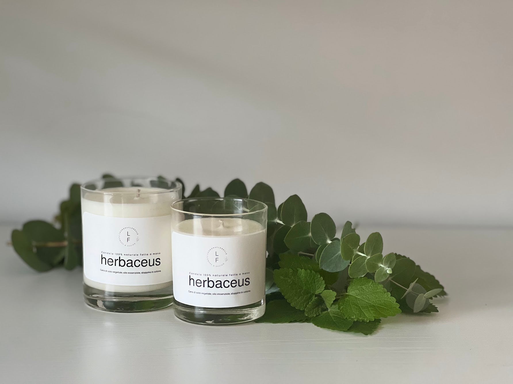 La candela al profumo di erbe emana note fresche, erbacee e senza tempo. Profuma ambienti nel pieno rispetto della natura poichè gli ingredienti sono lavorati a mano e tutti naturali. La cera di soia è vegan ed europea, lo stoppino in fibre naturali ha il supporto in metallo, il contenitore è di vetro e la scatola di cartone.